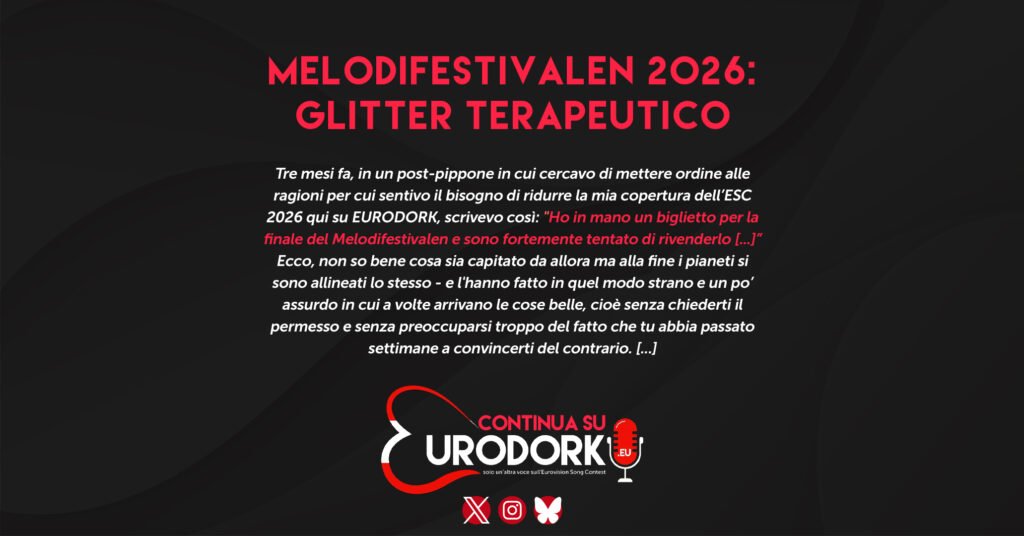 Tre mesi fa, in un post-pippone in cui cercavo di mettere ordine alle ragioni per cui sentivo il bisogno di ridurre la mia copertura dell’ESC 2026 qui su EURODORK, scrivevo così: “Ho in mano un biglietto per la finale del Melodifestivalen e sono fortemente tentato di rivenderlo (…) l’idea di andare a Stoccolma, viverlo e […]
